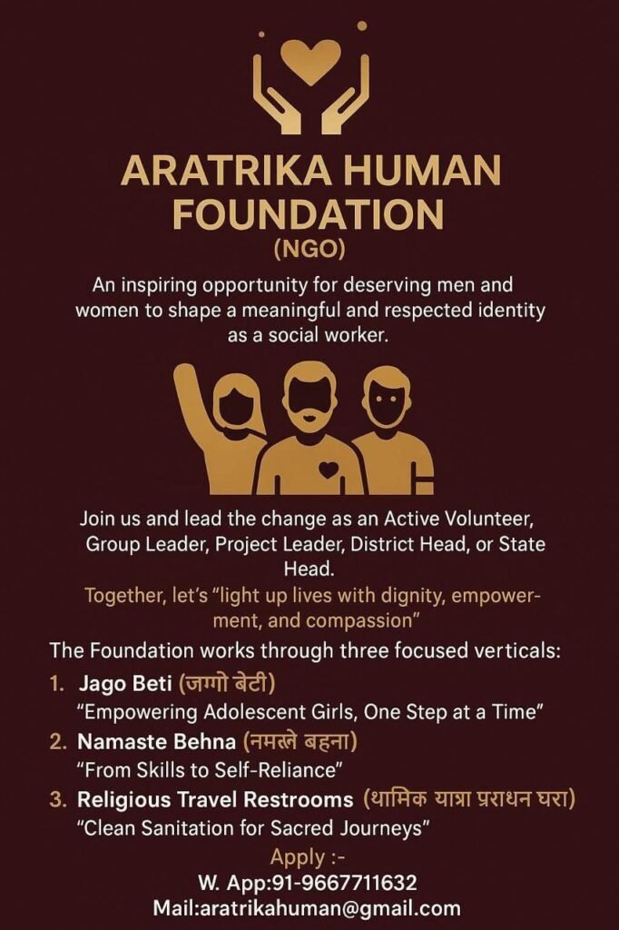 At Aratrika Human Foundation, we believe that meaningful change happens when compassionate people come together. Whether you’re an individual looking to give back, a company seeking impactful CSR partnerships, or simply someone who cares β€” your support can help us light a million lives across India.